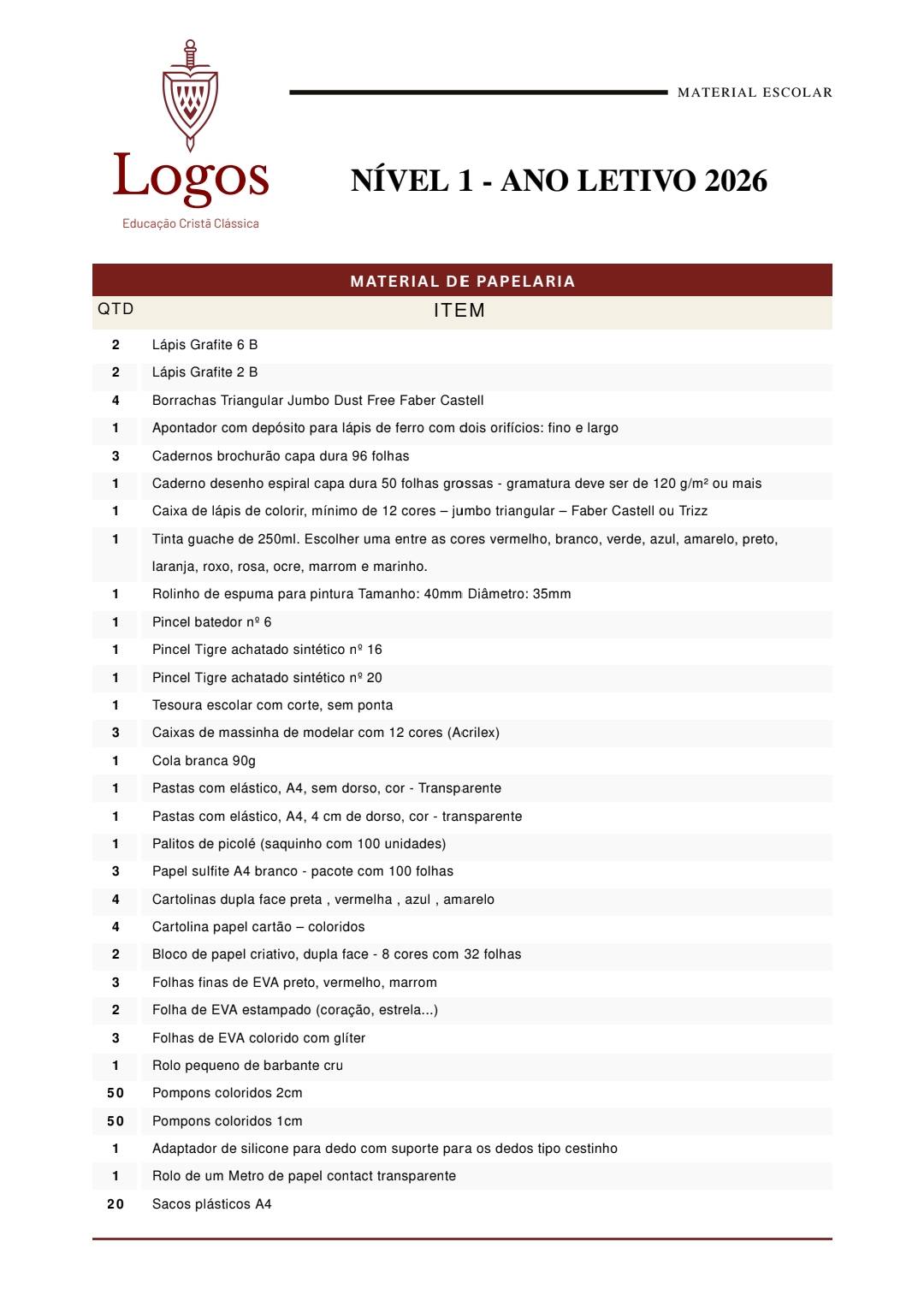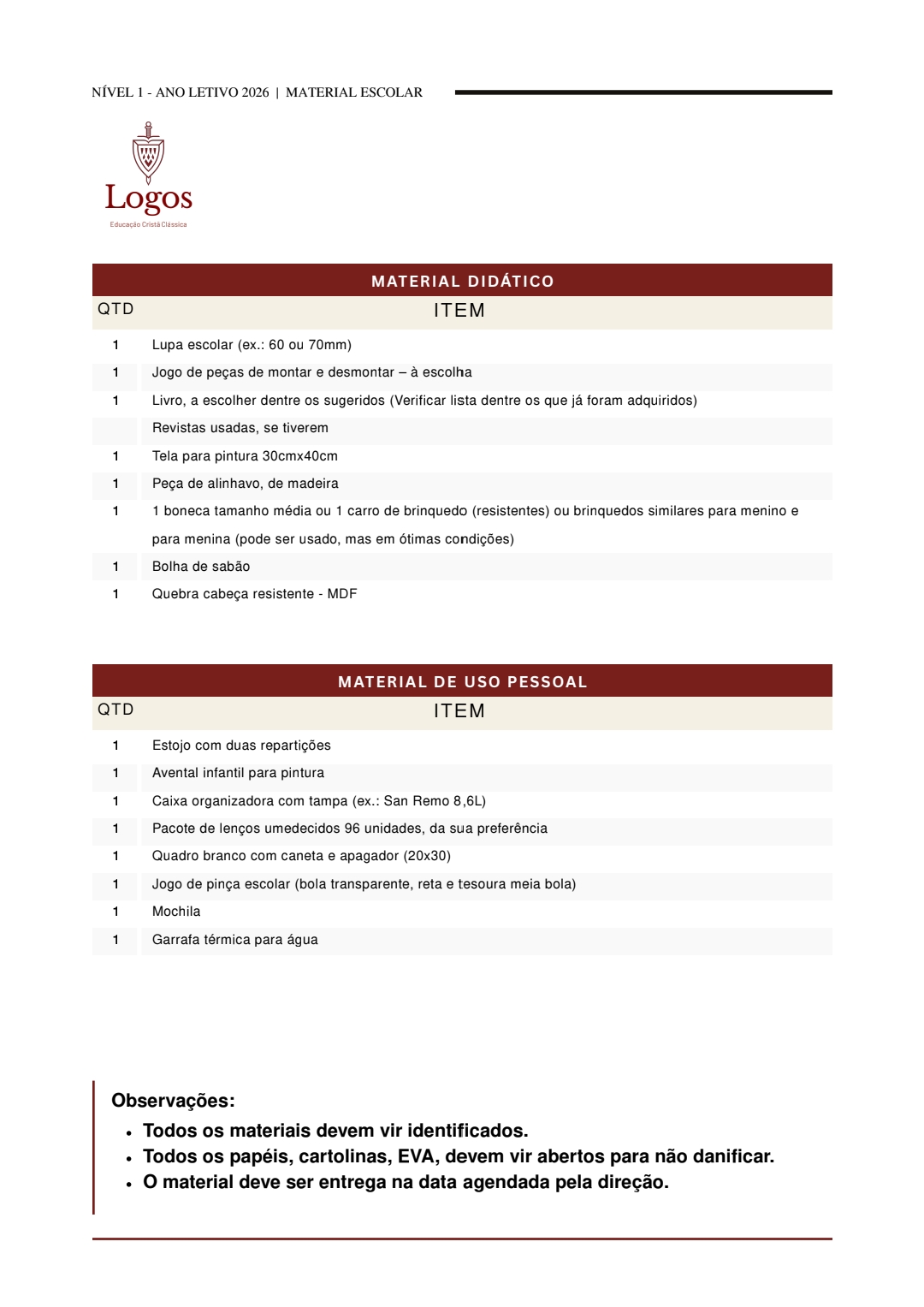 Lista Educação Infantil Nível 1