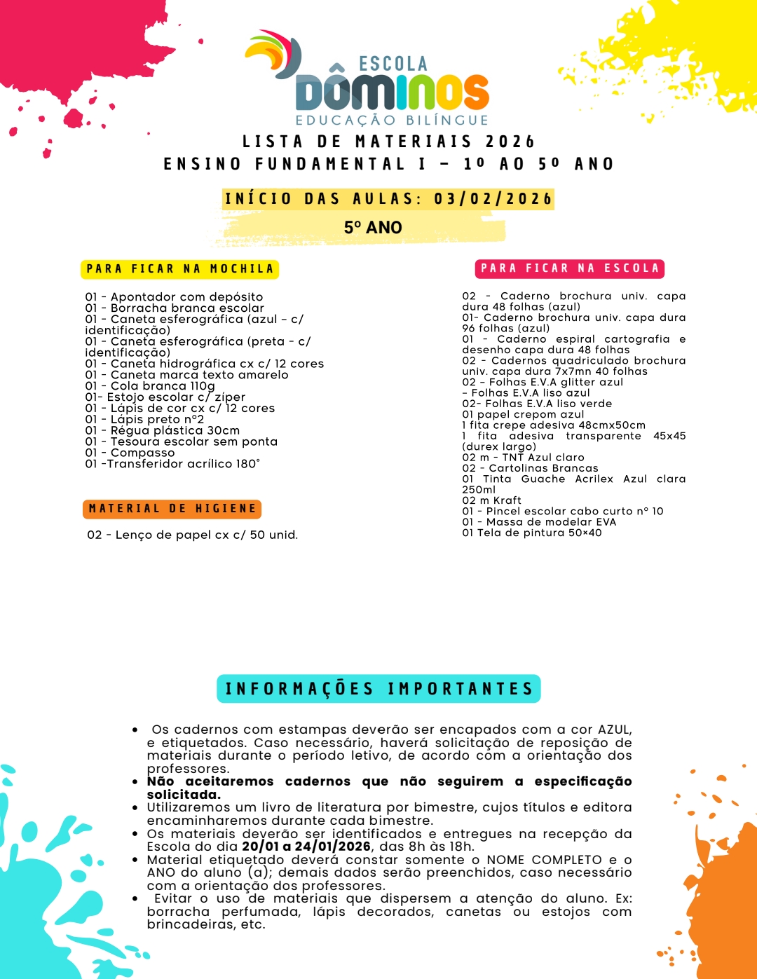 Lista Fundamental 5° Ano
