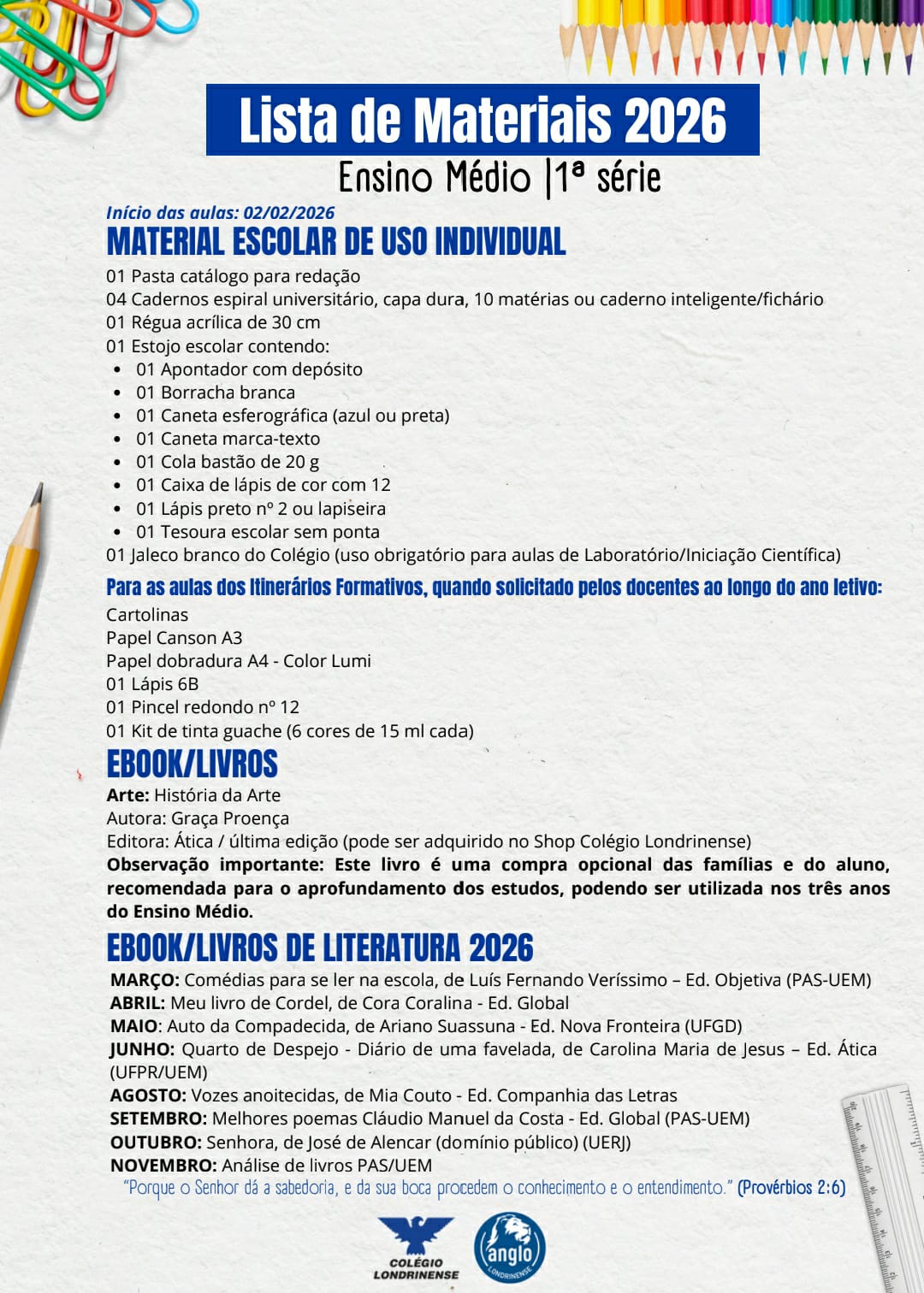 Lista Ensino Médio 1° ANO