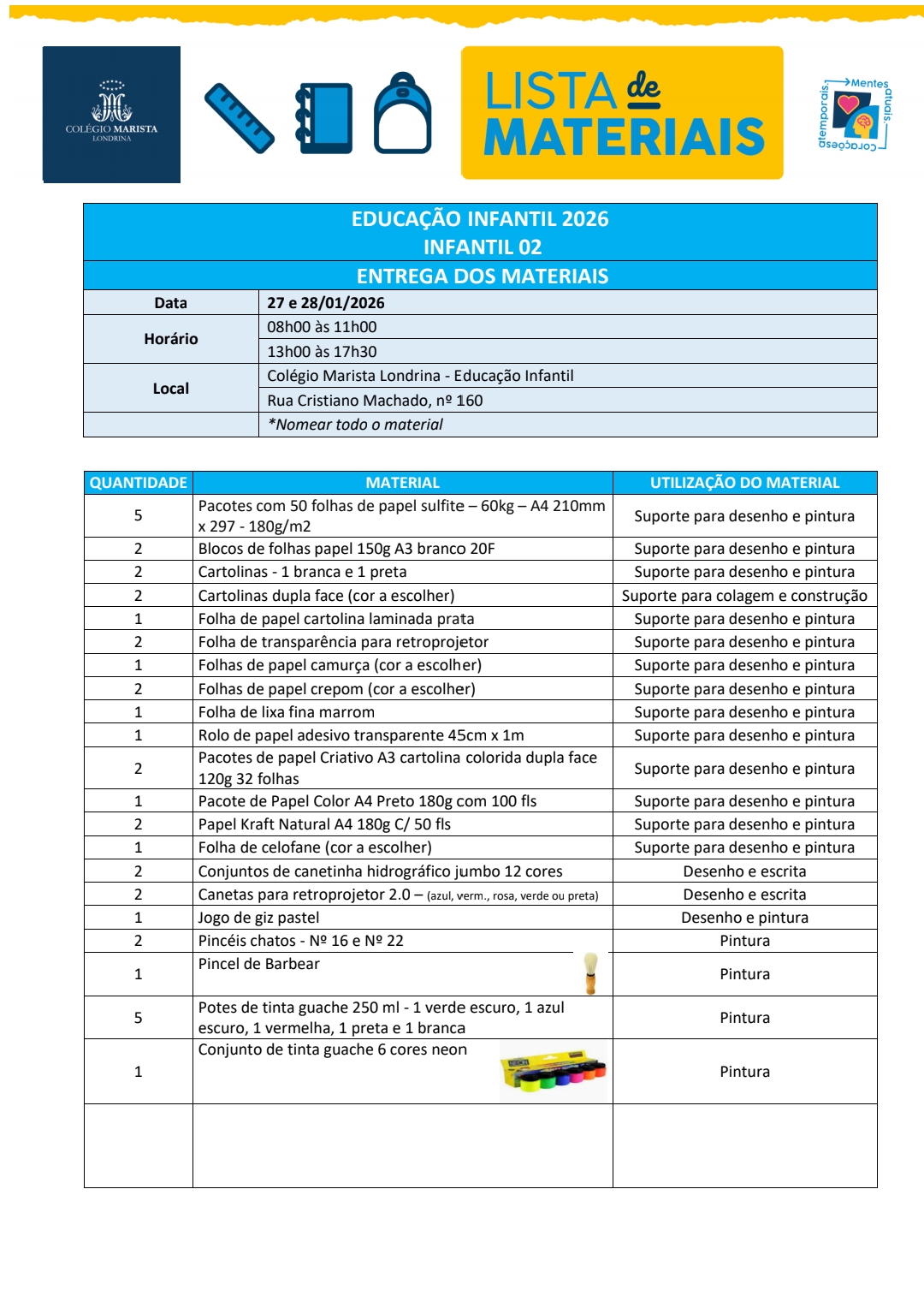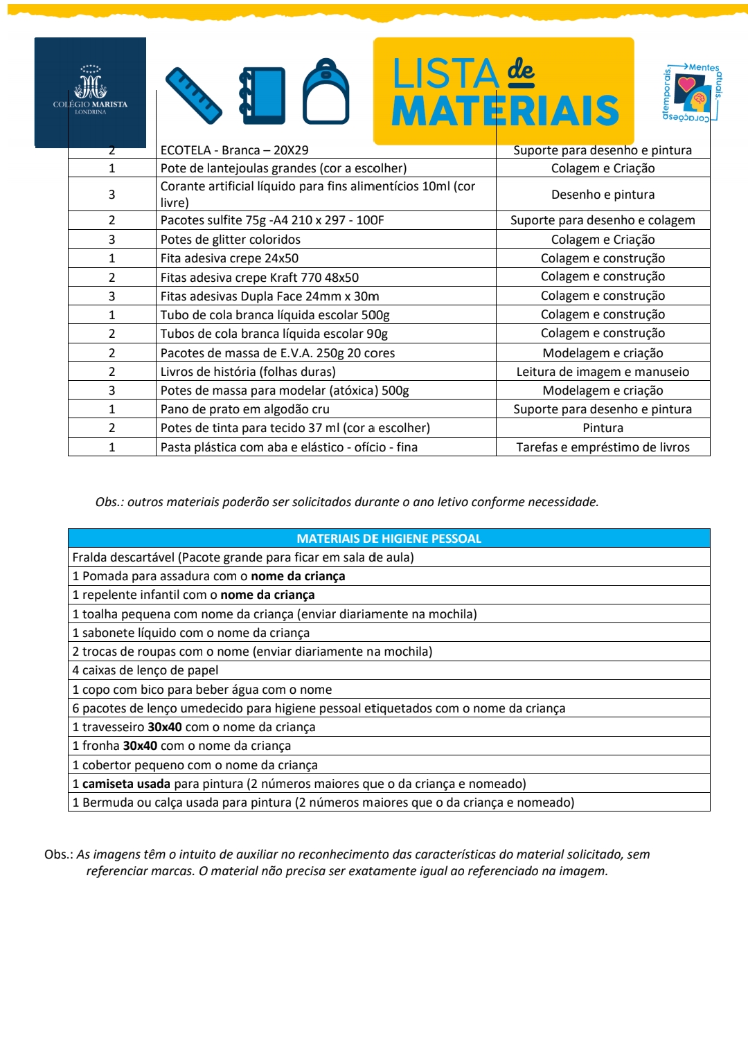 - Material de HIGIENE e USO PESSOAL