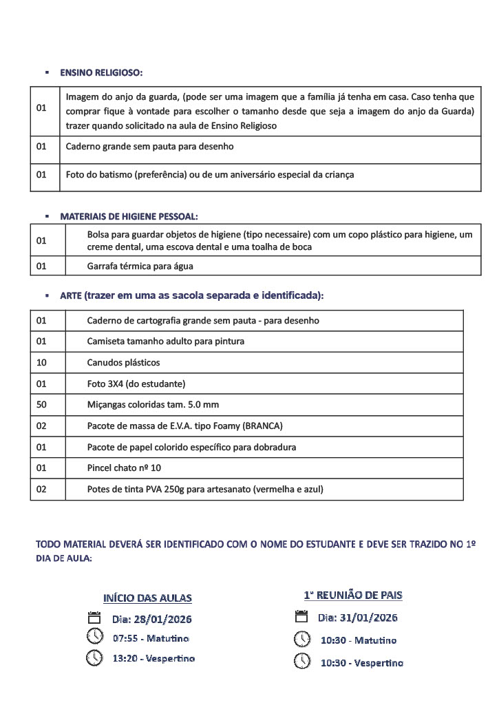 - Material de HIGIENE e USO PESSOAL