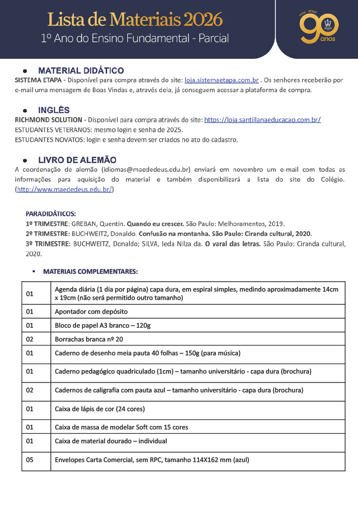 Lista Fundamental 1° ano / Parcial