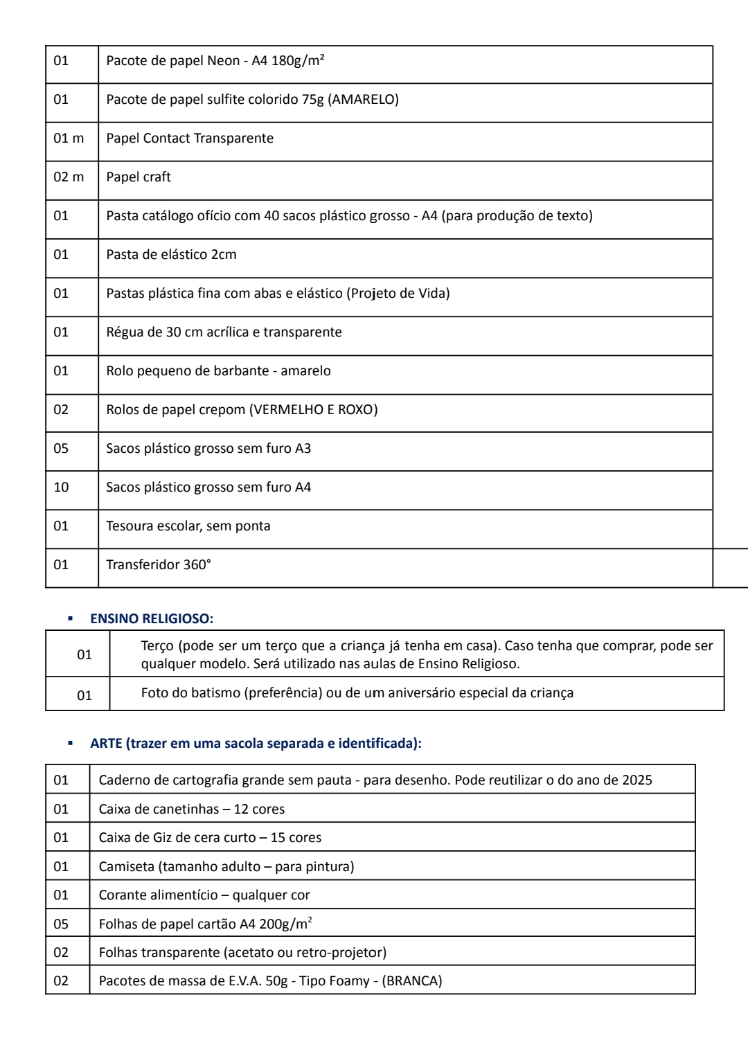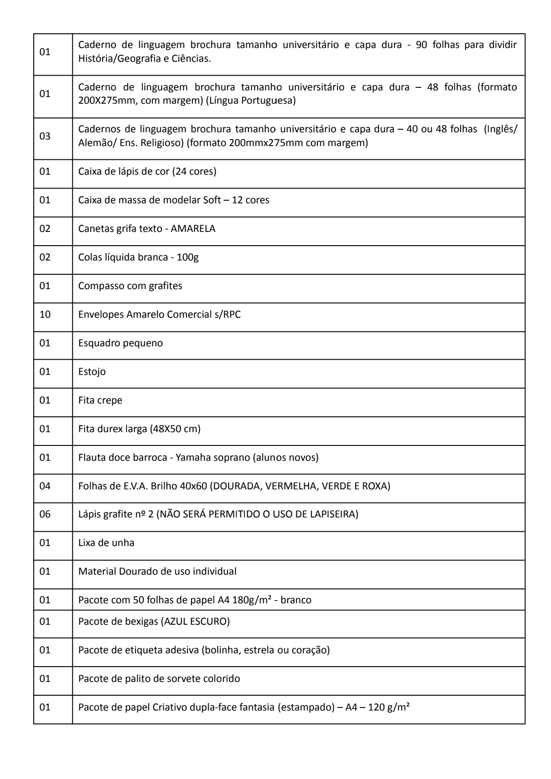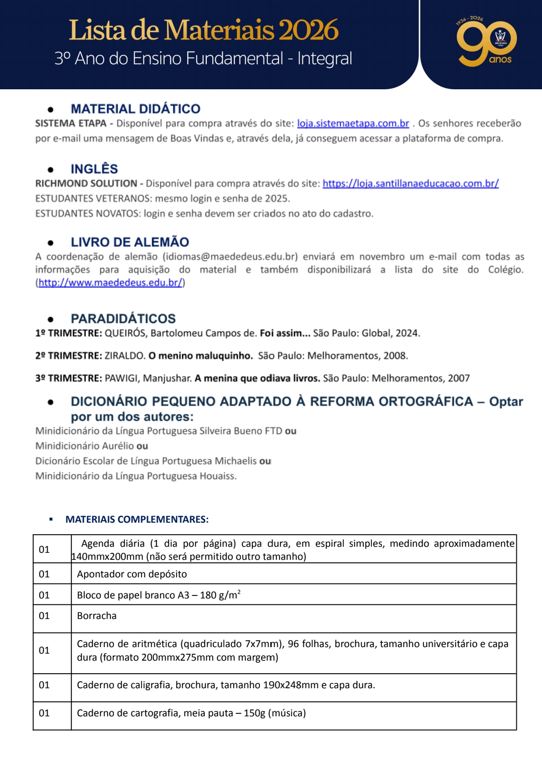 Lista Fundamental 3° ano / Integral