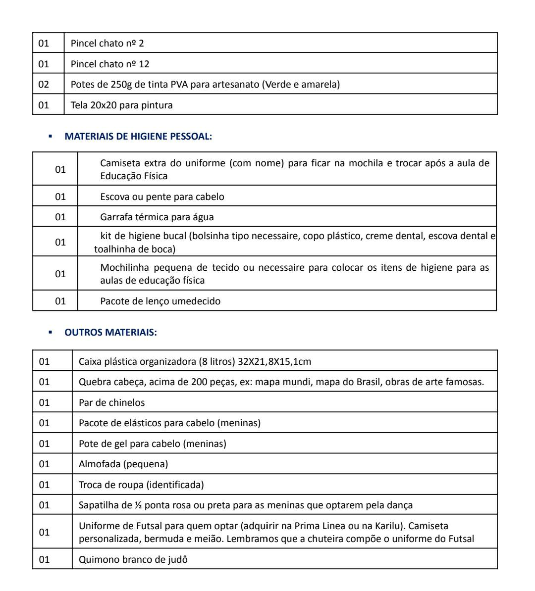 - Material de HIGIENE e USO PESSOAL