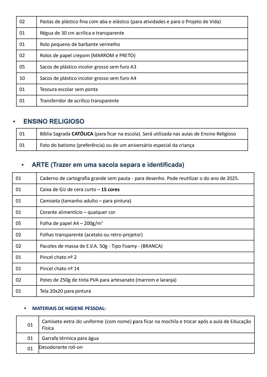 - Material de HIGIENE e USO PESSOAL