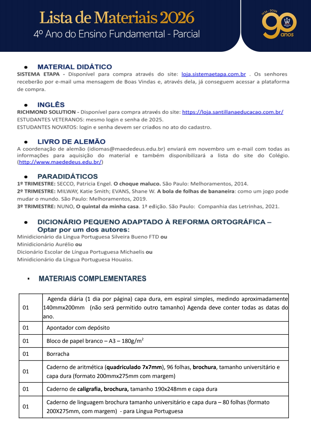 Lista Fundamental 4° ano / Parcial