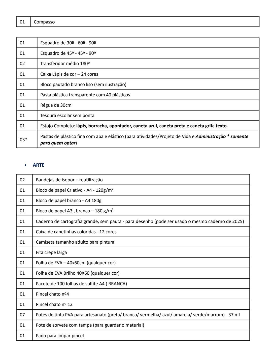- Material de HIGIENE e USO PESSOAL
