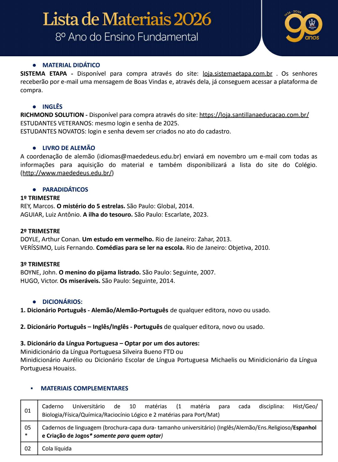 Lista 8° Ano