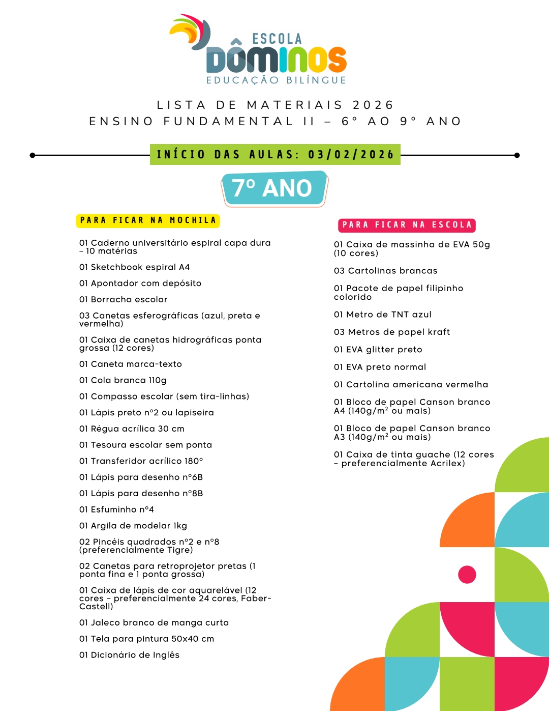 Lista Fundamental 7° Ano