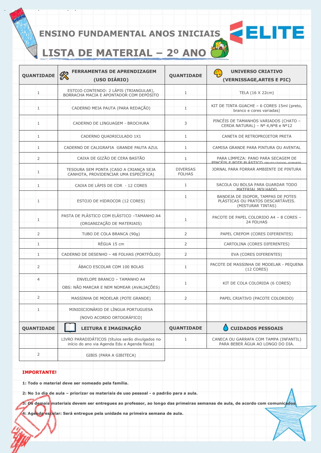 Lista Fundamental 2° Ano