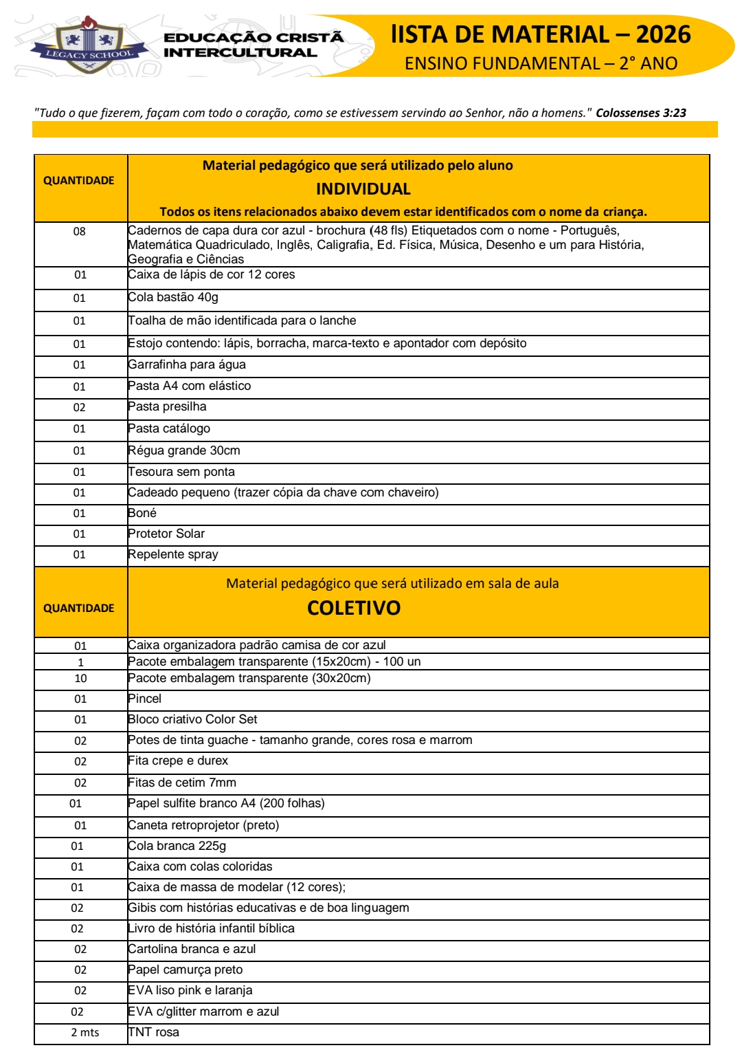 Lista Fundamental 2° Ano