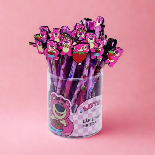 Lápis preto HB com topo emborrachado decorativo, perfeito para tornar o material escolar mais divertido e criativo.Possui escrita suave
