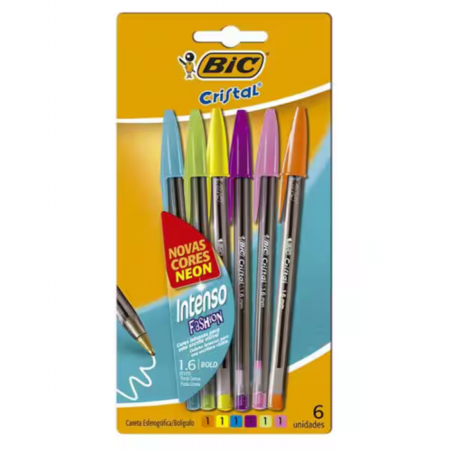 Kit Caneta Bic Cristal Intenso Fashion 1.6mm 6 Cores