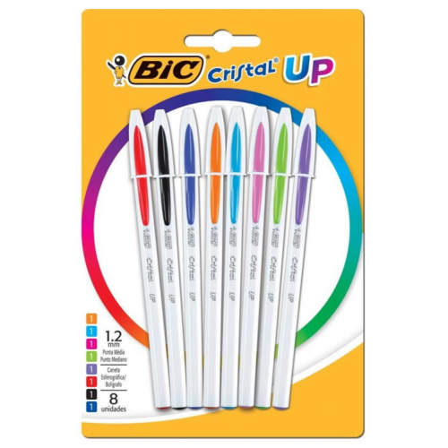 Caneta Esferográfica Bic Cristal Up Ponta Média, 8 Cores