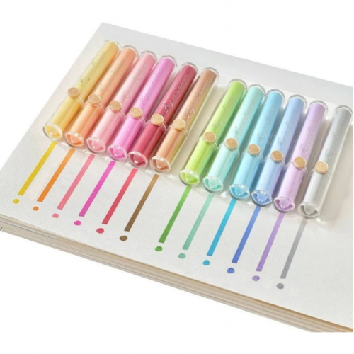 Com cores suaves em tons pastel, acabamento com glitter cintilante discreto e um aroma leve e agradável, cada marcação se torna mais divertida, criativa e inspiradora — perfeito para quem ama papelaria com personalidade.